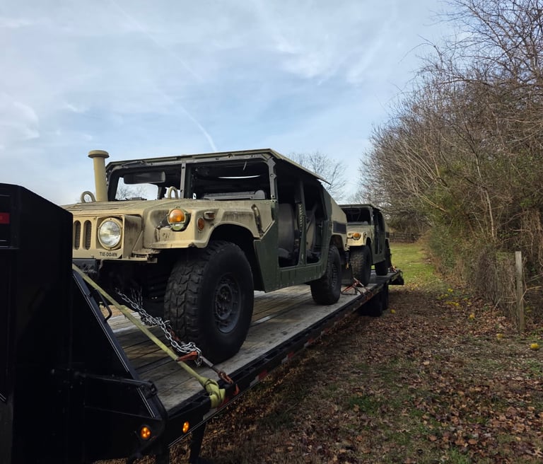 We expertly move cars, motorcycles, and military vehicles like Humvees with care and precision. From the auction , private , storage or anywhere . We got you covered